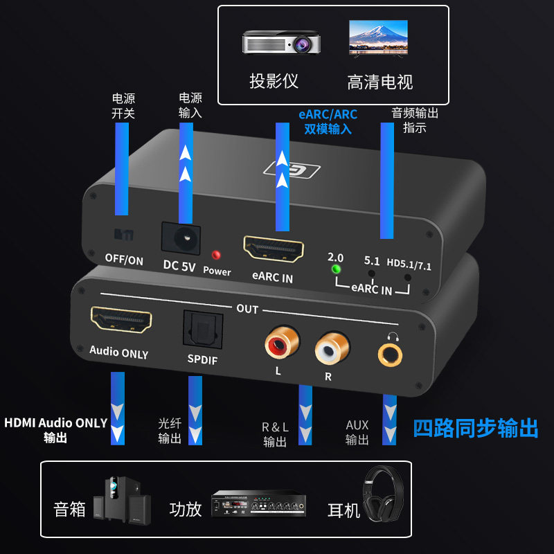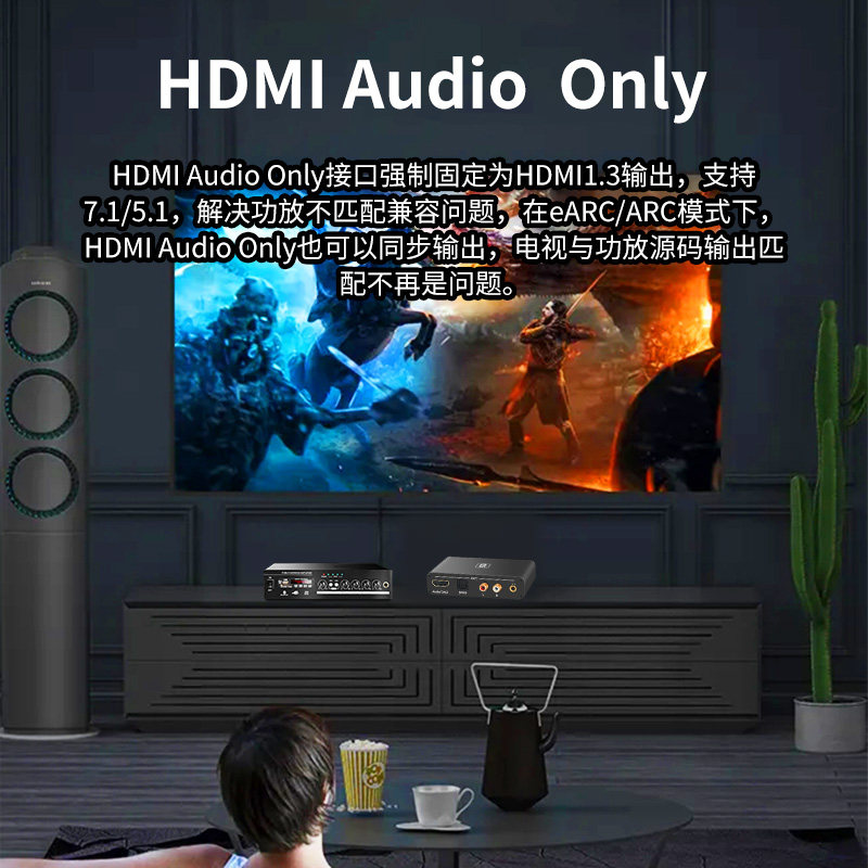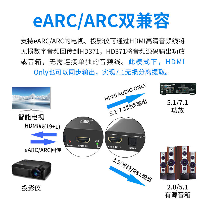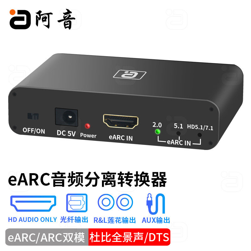 📚 阿音eARC音频分离转换器HDMI杜比7.1声道5.1光纤同轴192K解码功放