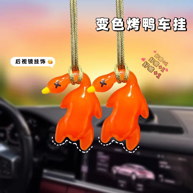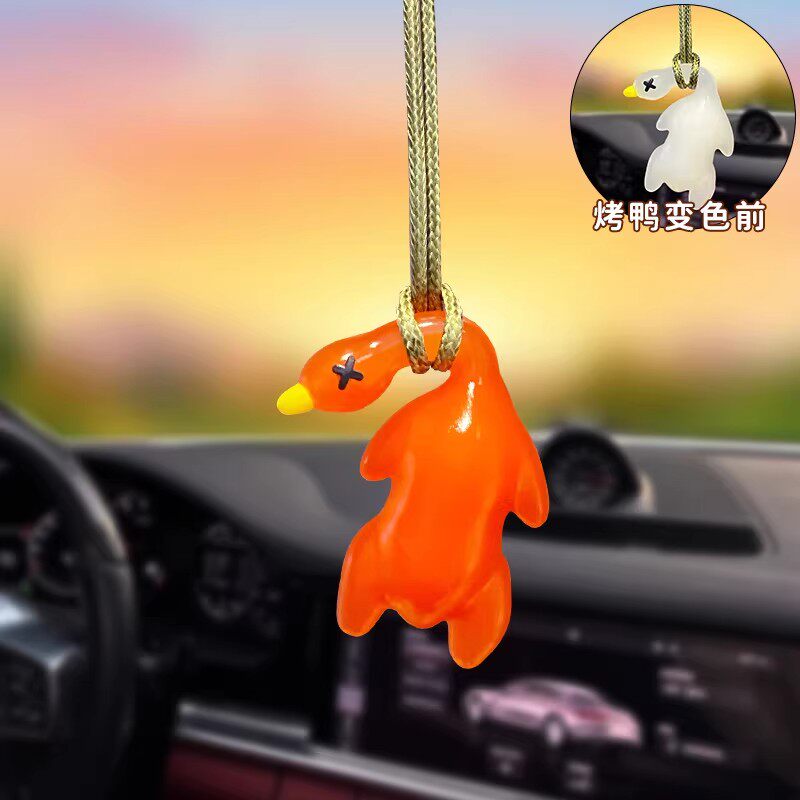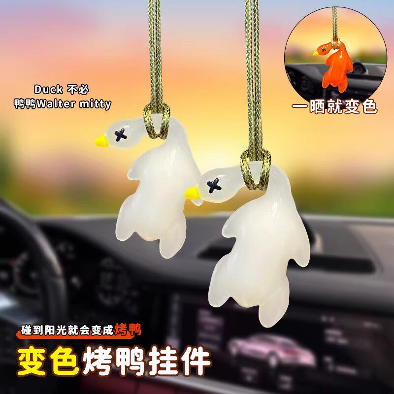 📚 变色烤鸭挂件紫外线照射变色创意车载包挂饰可爱搞怪白色车内装饰