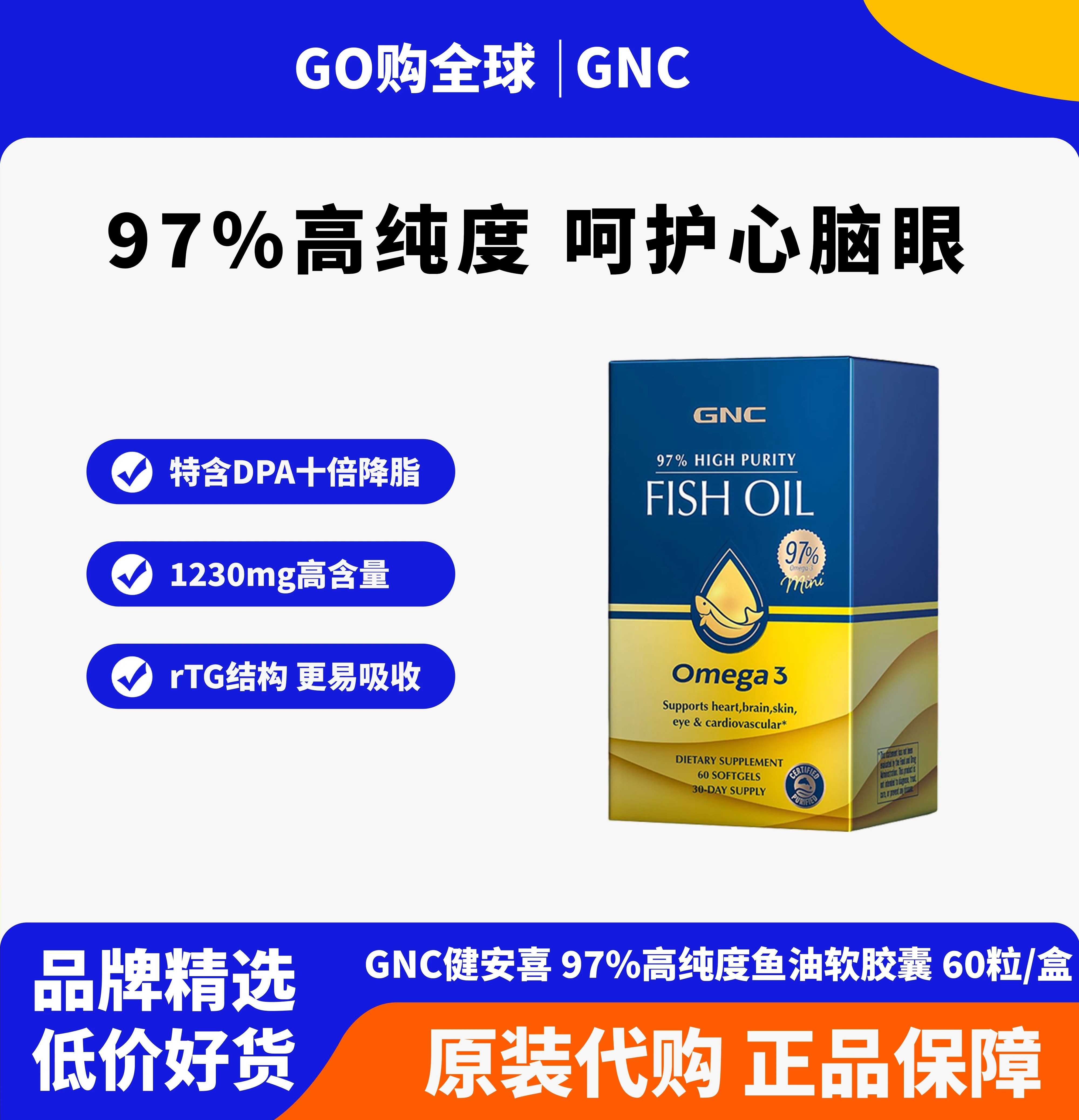 📚 GNC健安喜皇冠97深海鱼油omega3软胶囊60粒高浓度中老年人dha进口