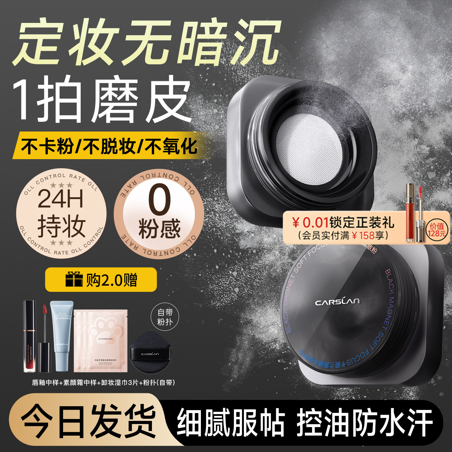 📚 卡姿兰黑磁散粉定妆蜜粉控油持久不脱妆粉饼哑光新升级2代官方