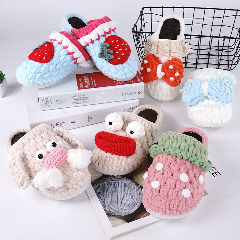 📚 在逃公主手工拖鞋女diy编织半成品材料包宿舍钩针秋冬粗冰条毛线