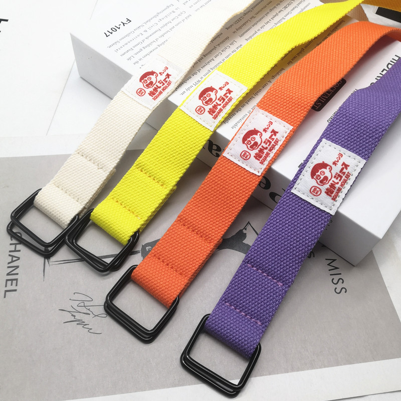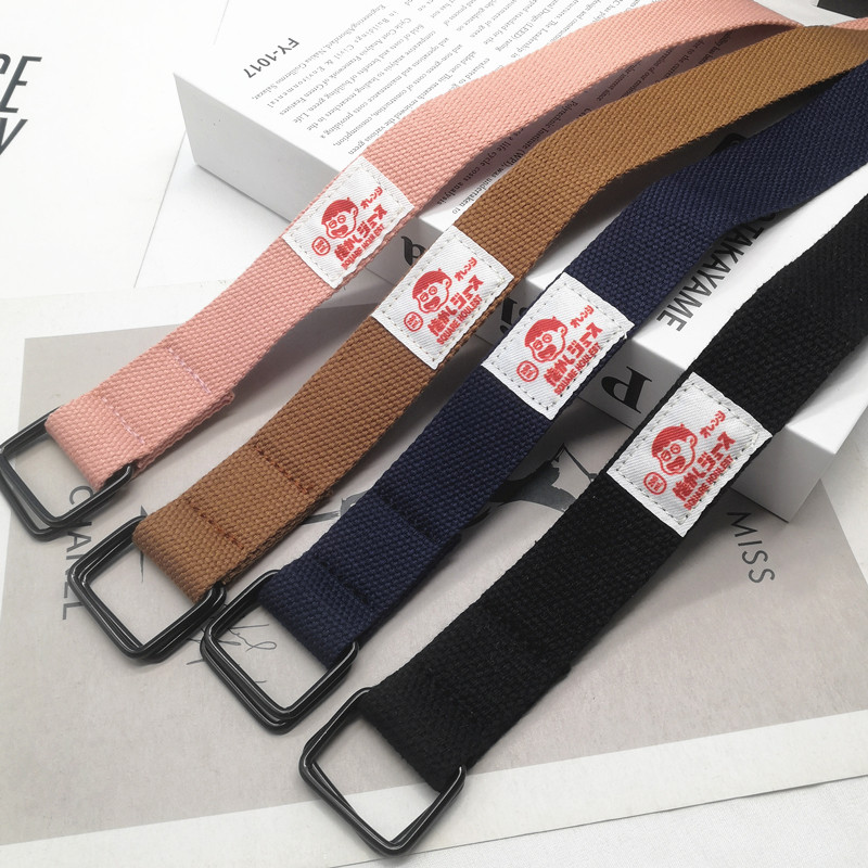 📚 原创编织卡通帆布腰带女配西装细窄裤带双环扣小众设计感潮流皮带