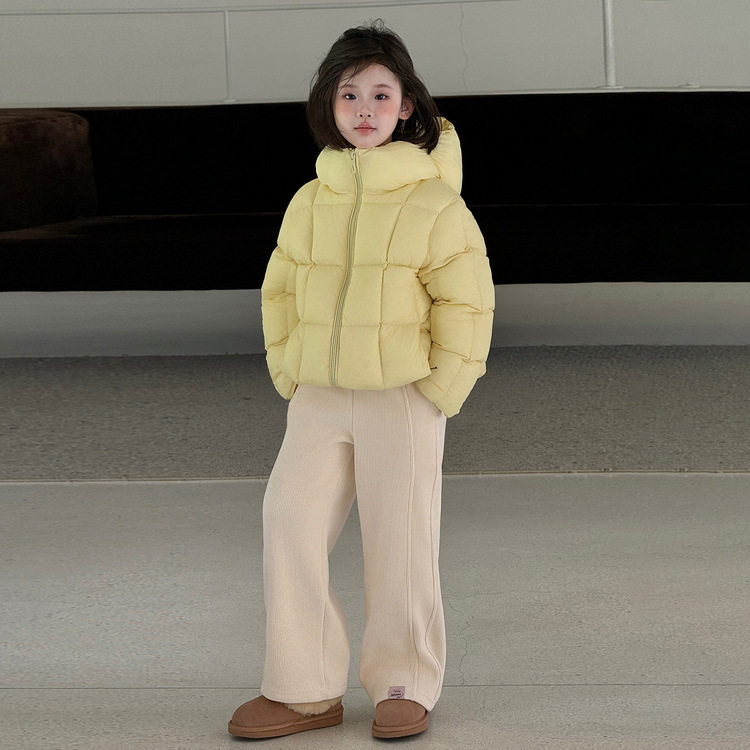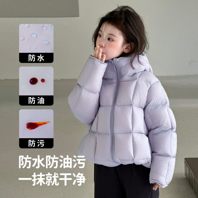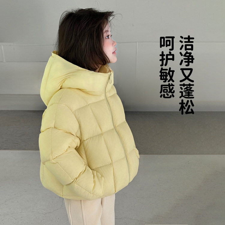 📚 女童奶黄色泡芙羽绒服秋冬季新款儿童三防轻薄款90白鸭绒连帽外套