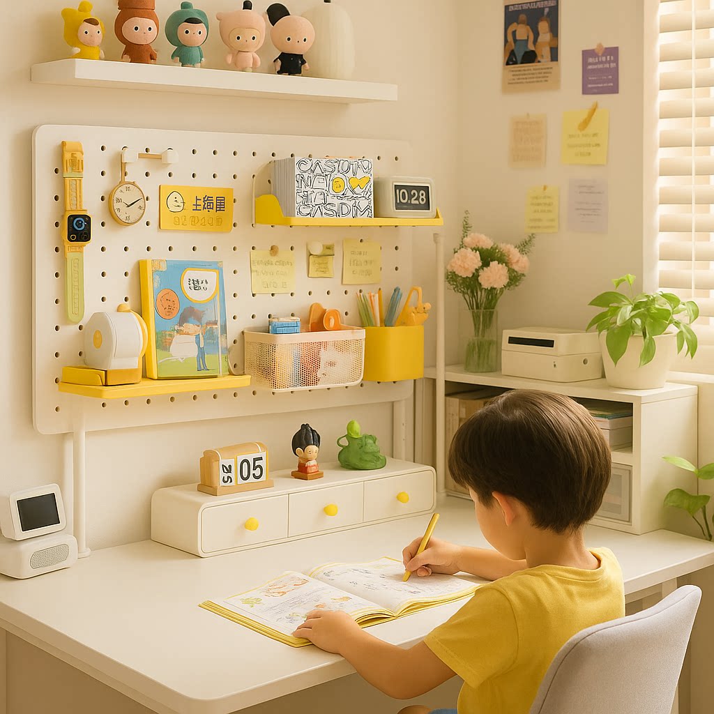 📚 桌面洞洞板置物架免打孔书桌学习收纳金属夹立式磁吸桌上学生书架
