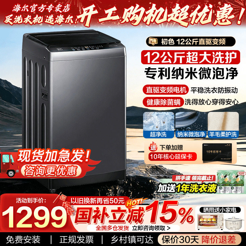 78¥ CZ005 Y1OYUEE6FOM¥ https://m.tb.cn/h.i3gnEtC [政府补贴]海尔12公斤新大容量洗衣机12kg全自动家用除菌波轮20E0 --------------------- 【原售价】4,999元 【现售价】1,999元。