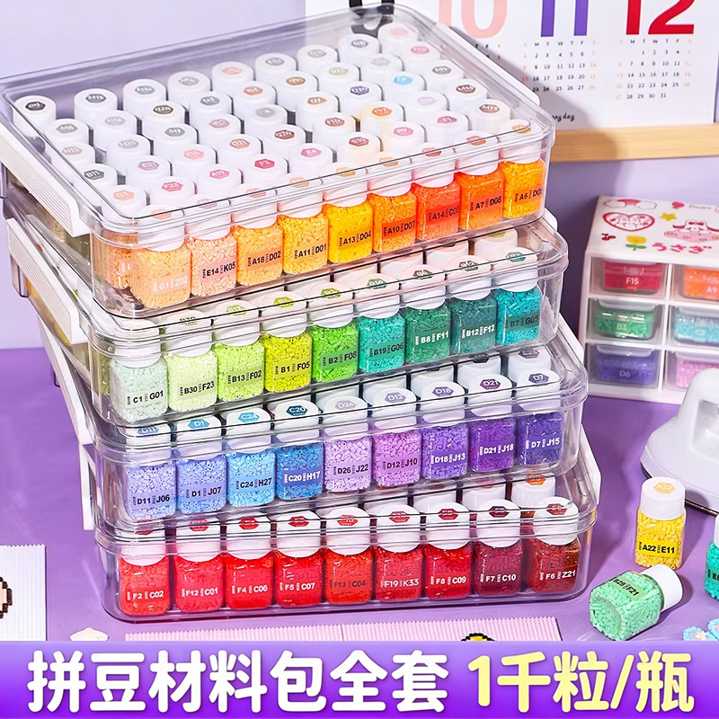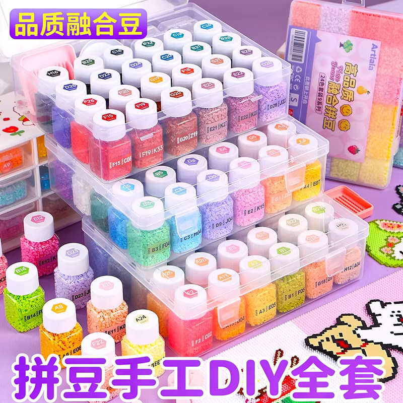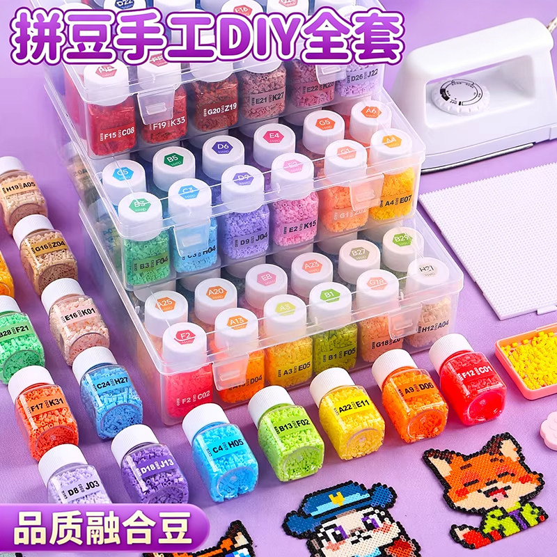 📚 拼豆豆221色全套材料包手工diy熨斗套装融合豆玩具女孩工具