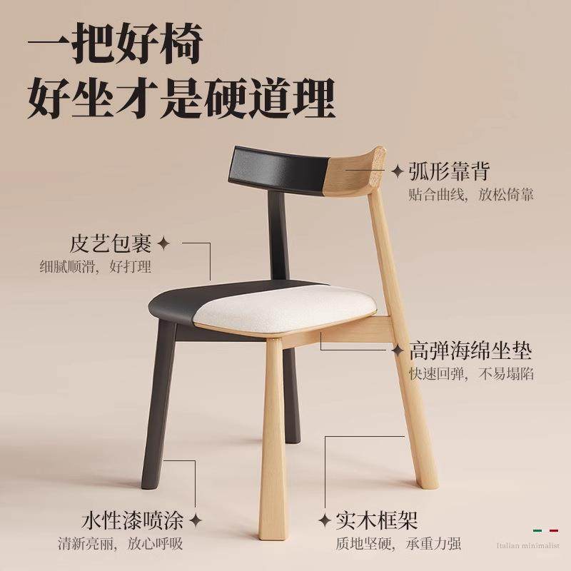 📚 餐桌椅船桨椅子全实木餐椅中古风餐厅靠背椅意式轻奢设计师牛角椅