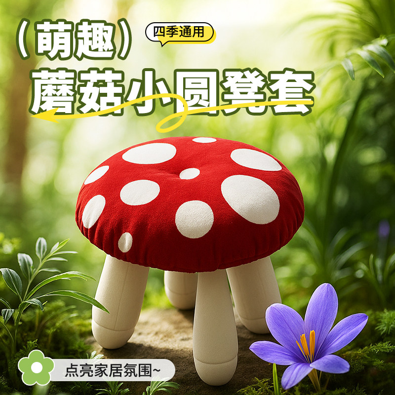 📚 圆凳套蘑菇造型套罩小木凳圆凳座套椅套坐垫圆形加厚屁垫儿童椅子