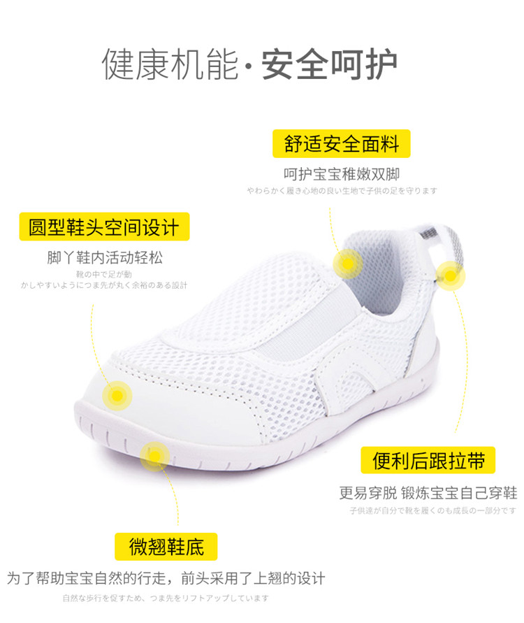 📚 IFME日本童鞋一脚蹬小白鞋幼儿园室内鞋儿童软底新款机能鞋男女童