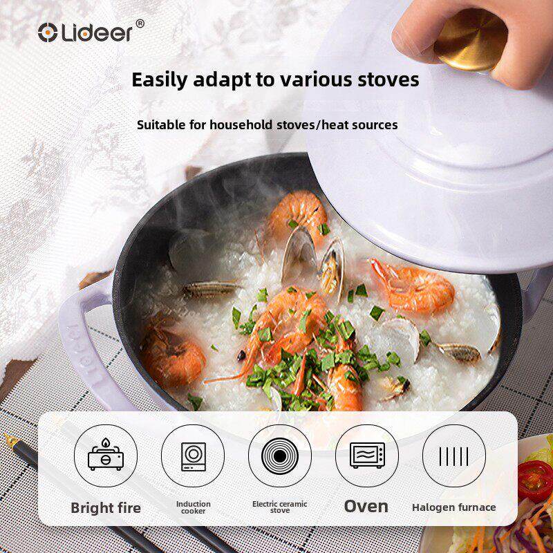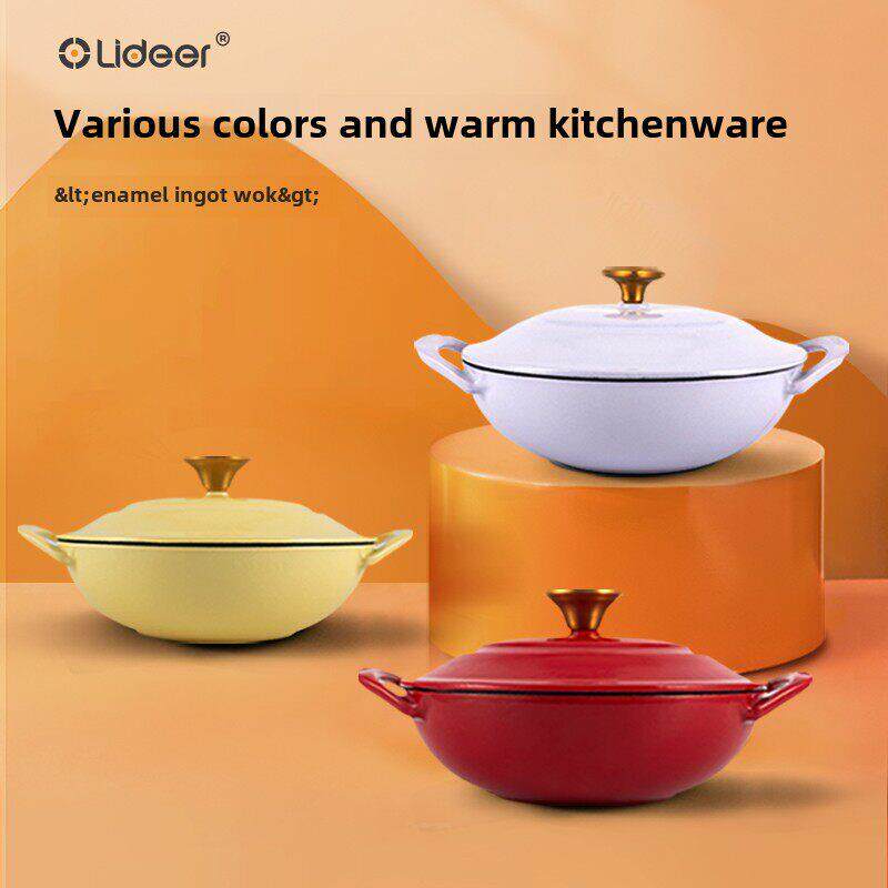 📚 林德尔搪瓷锅铸铁双耳小锅一人食锅锅家用不粘锅铁锅电磁炉