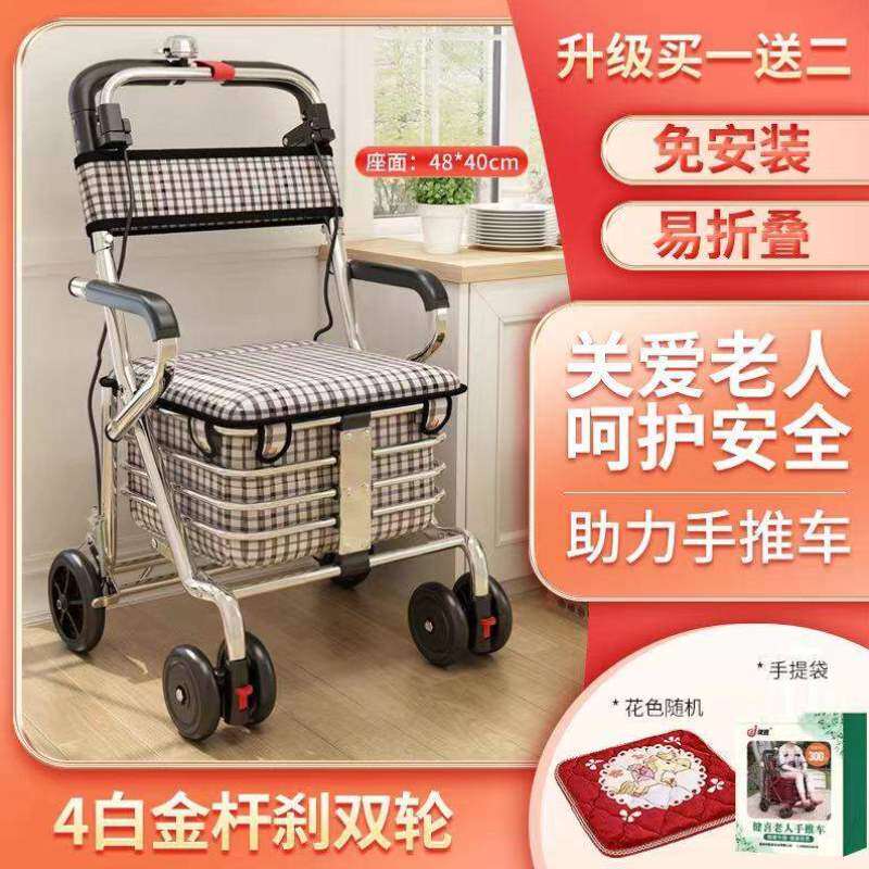 📚 软椅代步车四轮户外推坐可座椅助步折叠购物车可老人手推车老年人