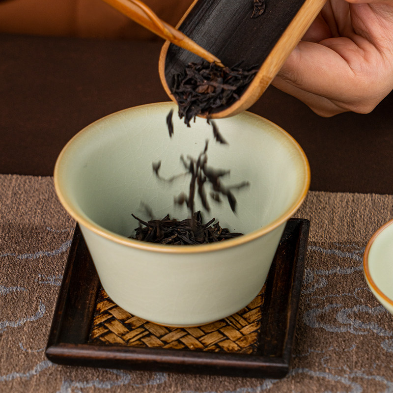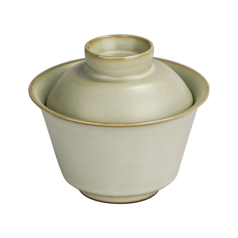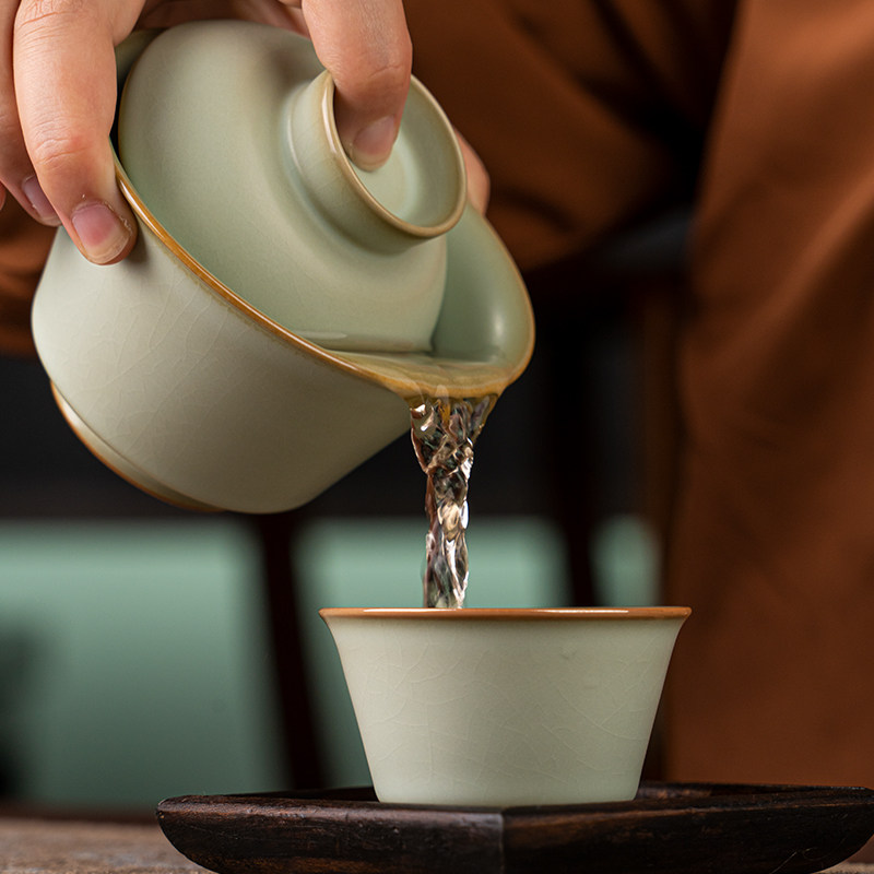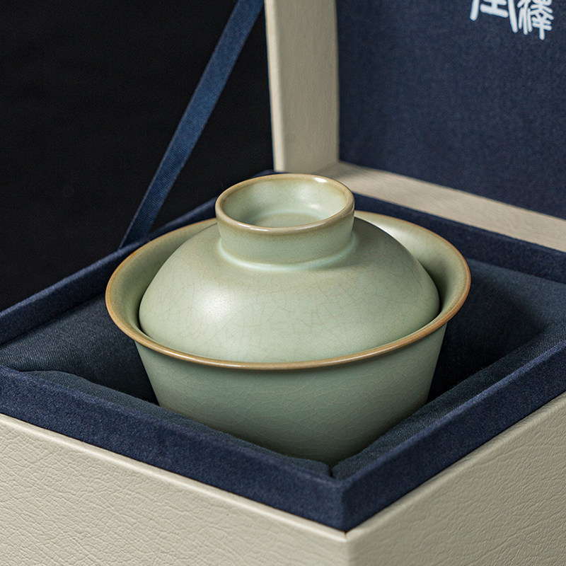 📚 汝窑二才盖碗马蹄茶杯复古单个泡茶碗景德镇汝瓷仿古宋朝茶具青瓷