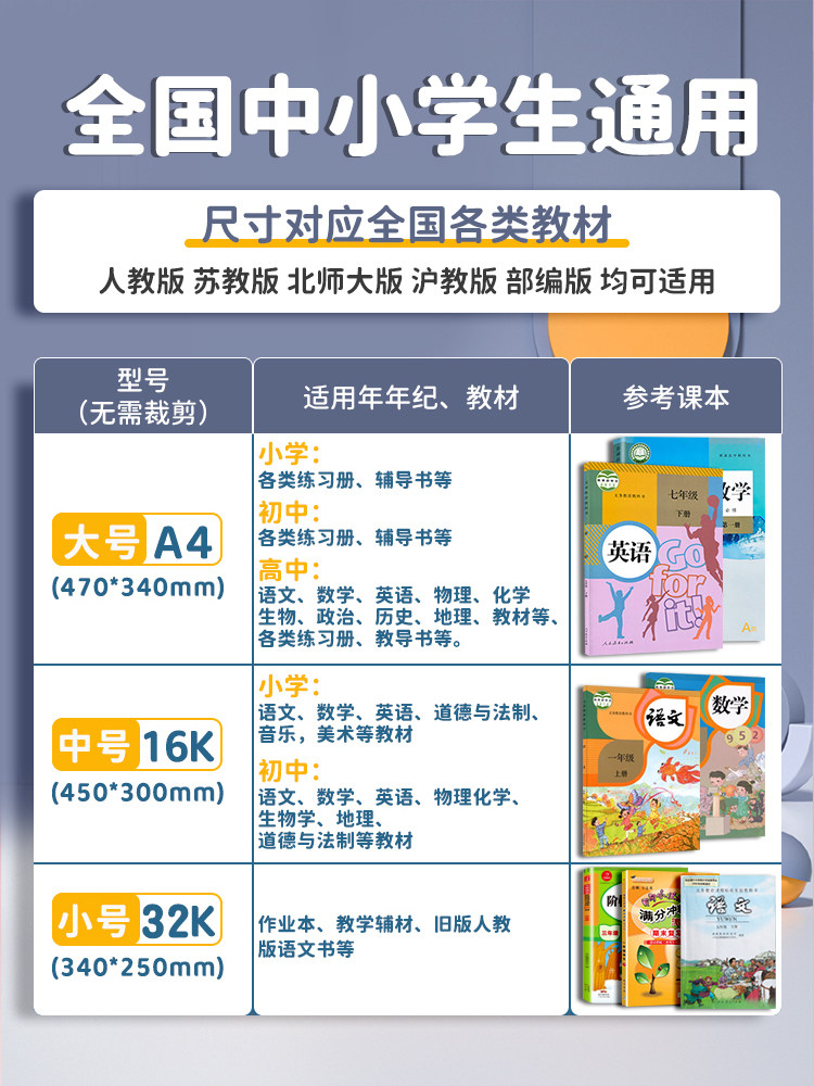 📚 得力书皮书套透明包小学生书膜防水防污书皮纸书套保护套一二三四五年级16k小学课本包书膜书皮套教材同步