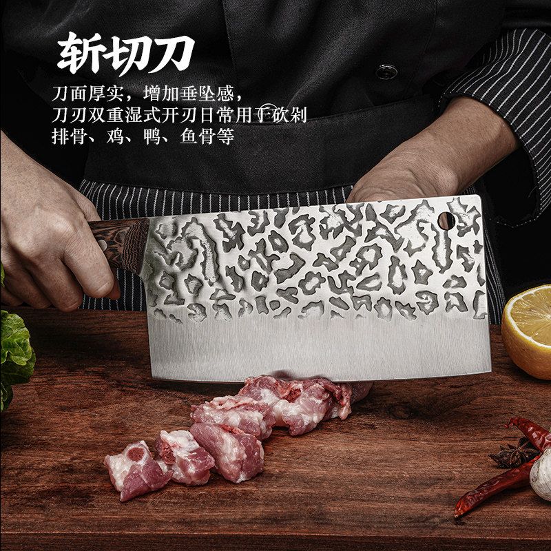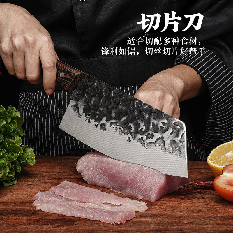 📚 龙泉锻打菜刀家用锰钢厨师专用切片刀切肉刀砍骨斩切两用刀具套装