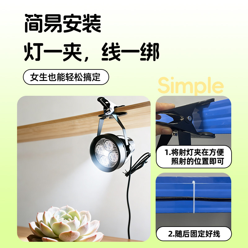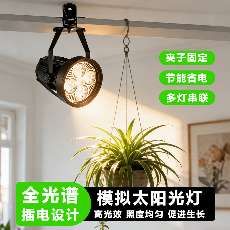 📚 模拟太阳光灯 全光谱植物多肉仙人掌补光免轨道串联插座led照明灯