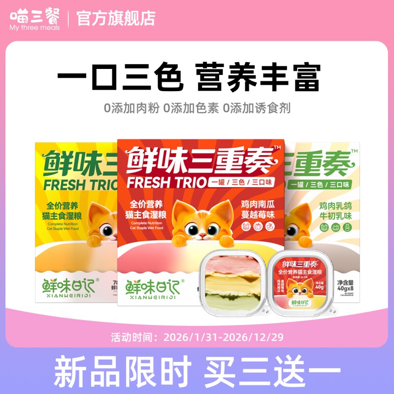 📚 喵三餐主食餐盒猫主食罐成猫幼猫一餐猫罐头重泌尿慕斯全阶段鸡肉