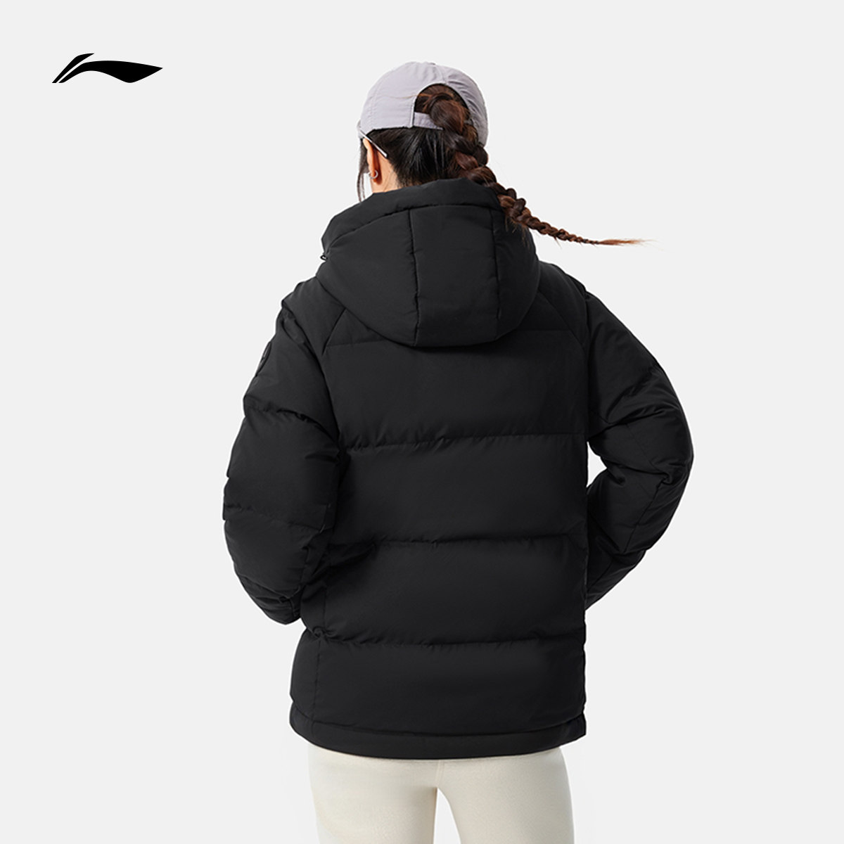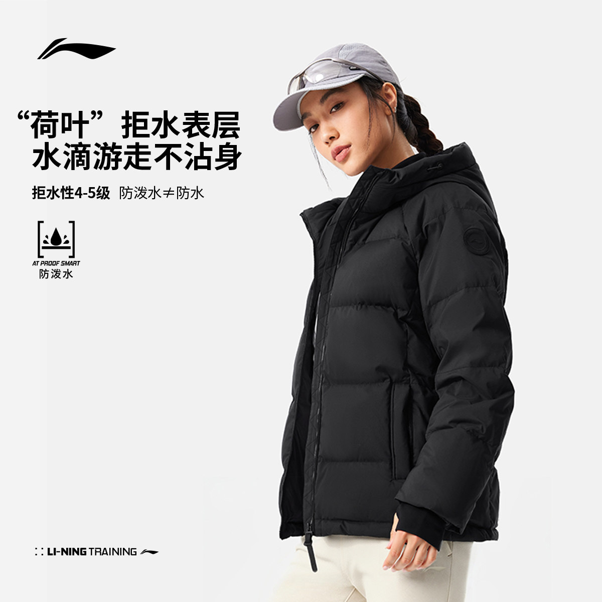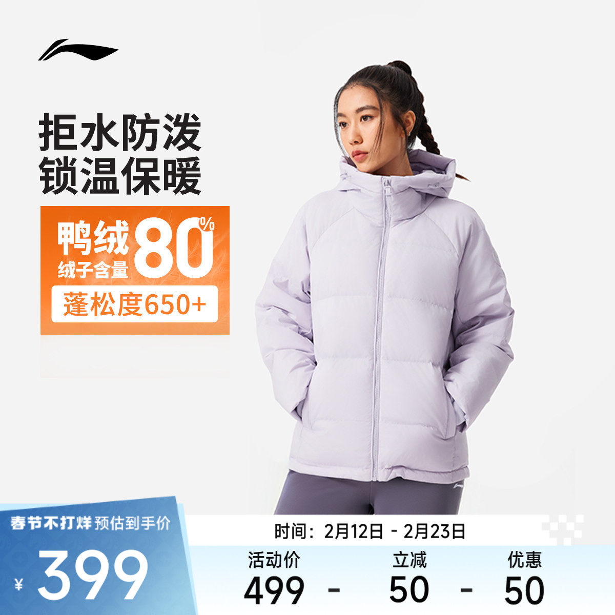 📚 李宁羽绒服女士冬季80%鸭绒防泼水锁温保暖防风连帽短款运动外套