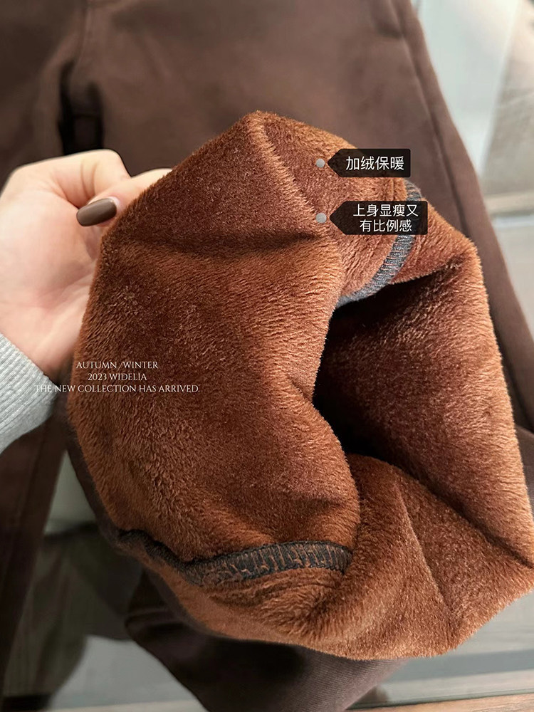 📚 widelia陈姬儿冬季磨毛加绒高腰马蹄喇叭微喇裤女阔腿牛仔裤0823