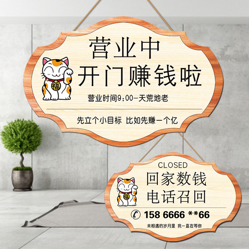 📚 创意简约正在营业中挂牌双面店主有事外出电话时间提示牌空调开放