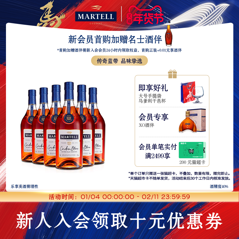 📚 Martell马爹利蓝带xo级干邑白兰地500ml*6瓶法国洋酒烈酒礼盒