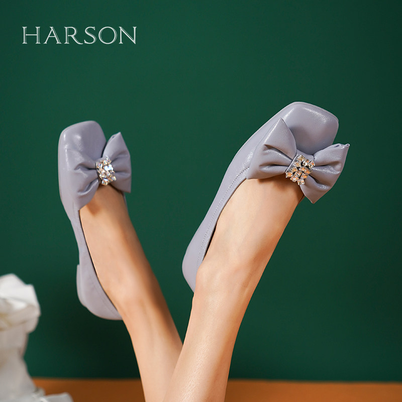📚 哈森秋商场同款甜美可爱方头芭蕾鞋蝴蝶结满邦女单鞋HS237153