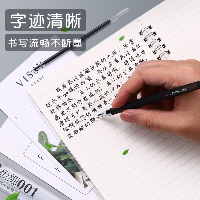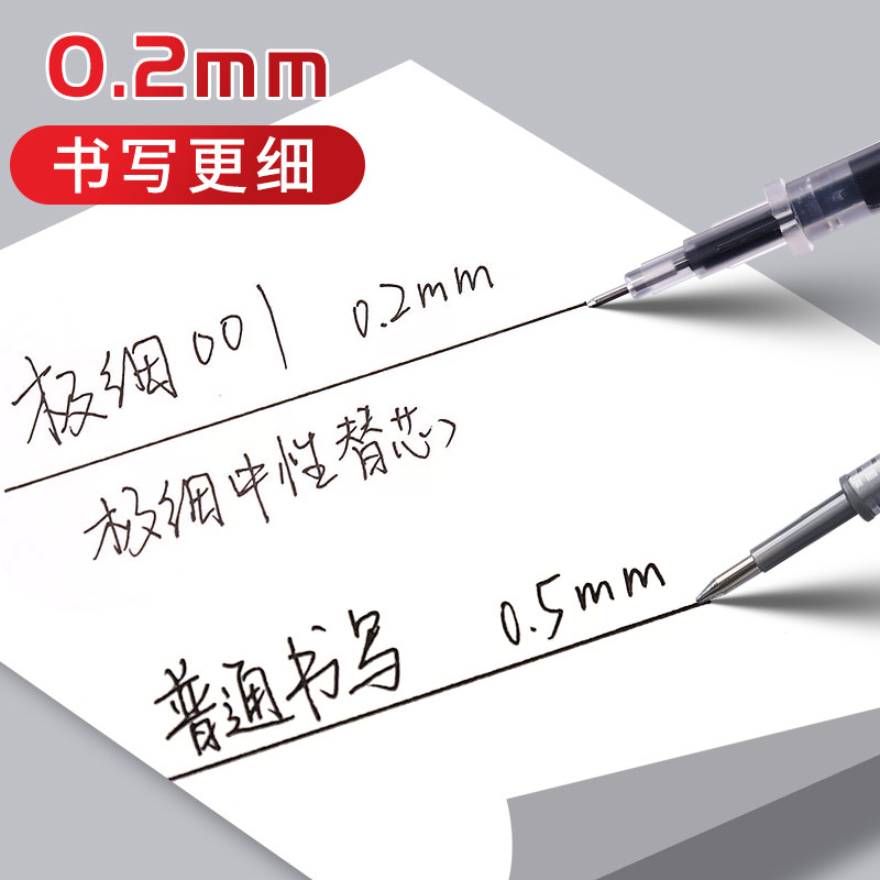 📚 晨光0.2mm极细签字中性笔替芯学生用超细全针管黑笔细头红色特细财务记账会计专用细笔芯细笔划标记碳素水笔