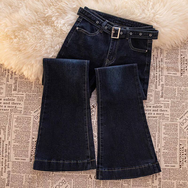 📚 辣妹复古韩版微喇牛仔裤女2026春夏装配带腰带设计感喇叭牛仔裤潮
