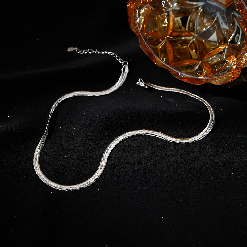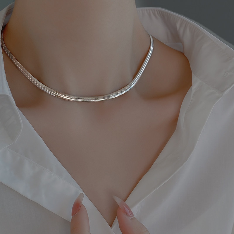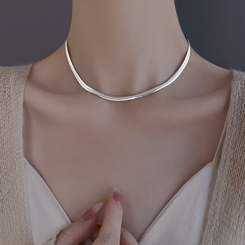 📚 925纯银扁平蛇骨项链2025小众轻奢设计choker锁骨链高级感颈链夏