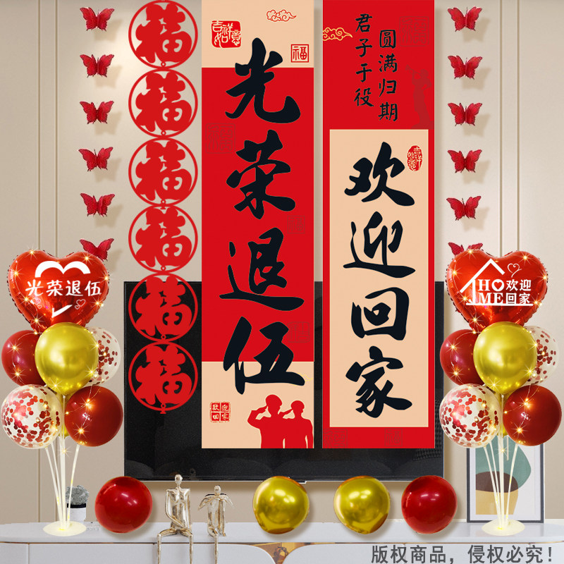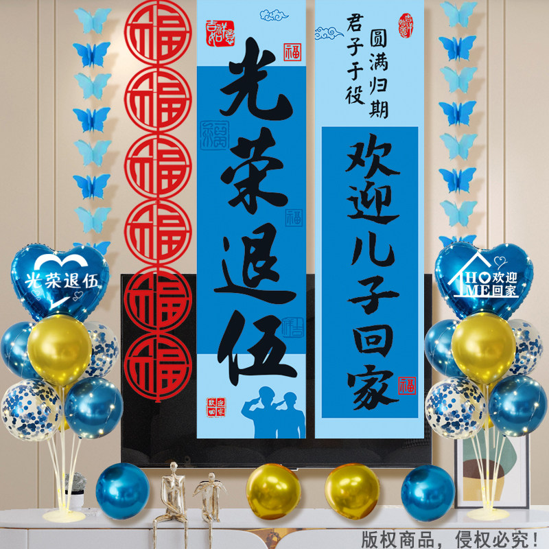 📚 退伍回家欢迎仪式家里客厅场景布置儿子当兵退役回来迎接氛围挂布