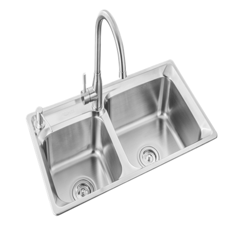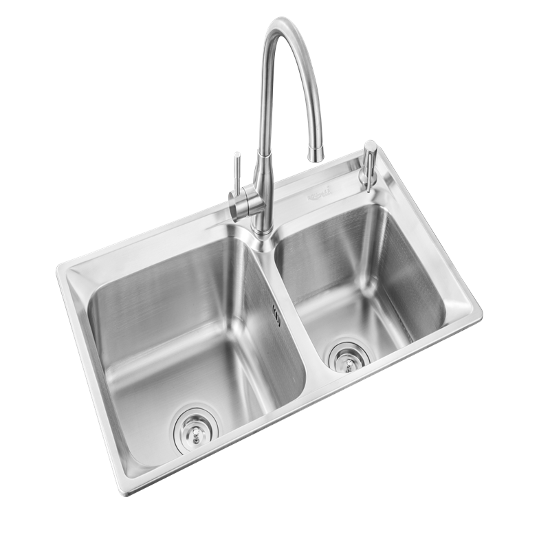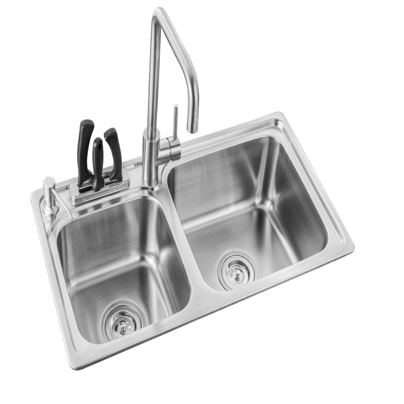 📚 柔美不锈钢洗菜盆厨房双槽沥水蓝水龙头套餐7440沥水蓝刀架斜边