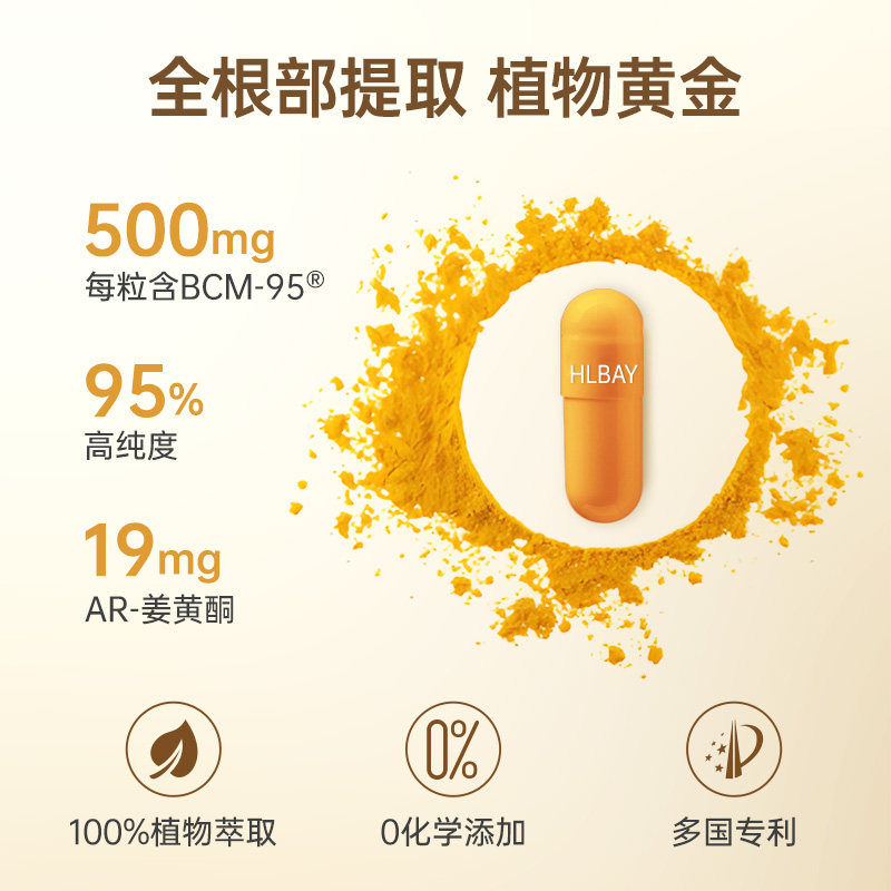 📚 【自营】HLBAY健生湾姜黄素胶囊BCM95护关节粉疼养肝解酒肠胃3瓶