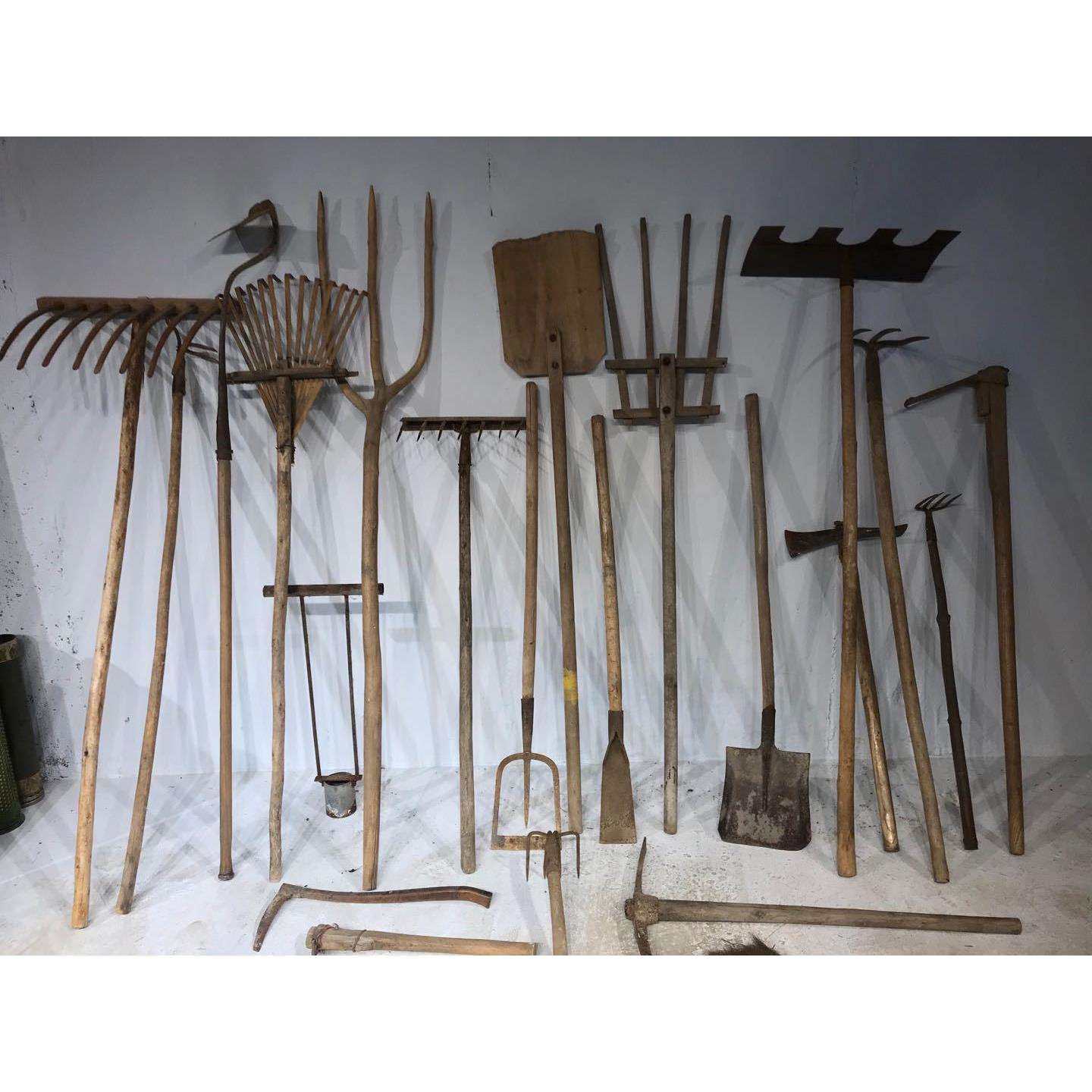 📚 5ZW民俗老物件农家院摆件老旧农具筛子斗笠铁掀小镐耙子木锨镐头