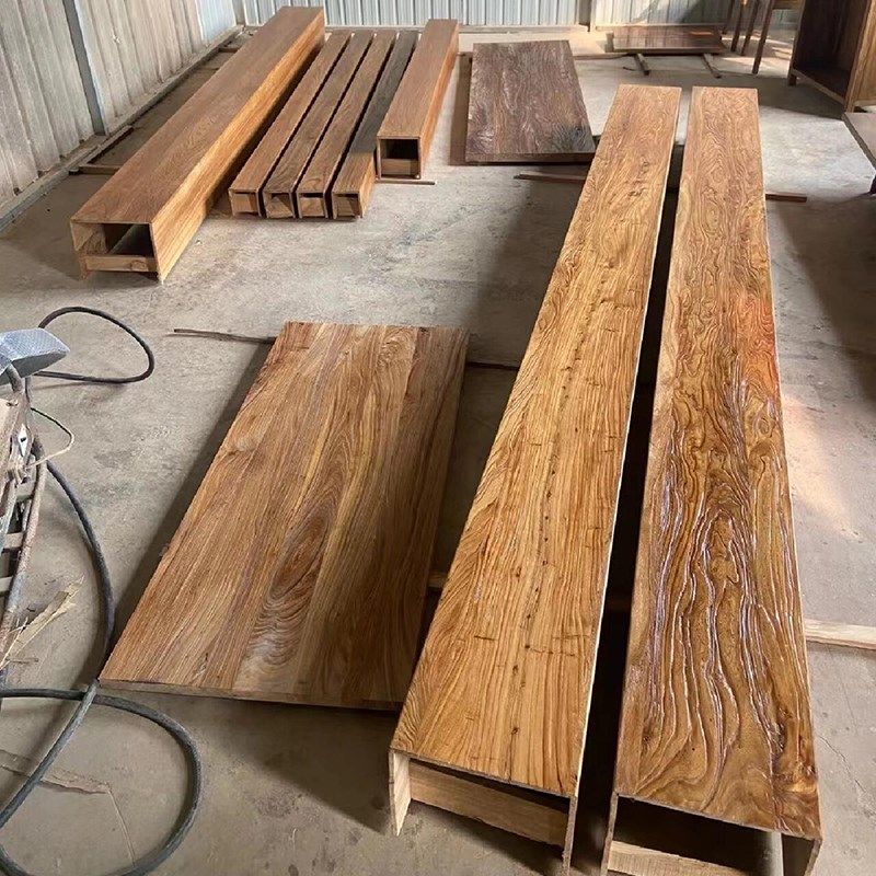 📚 老榆木假梁吊顶装饰木条木板实木C装饰空心木梁老木头榆木假梁定
