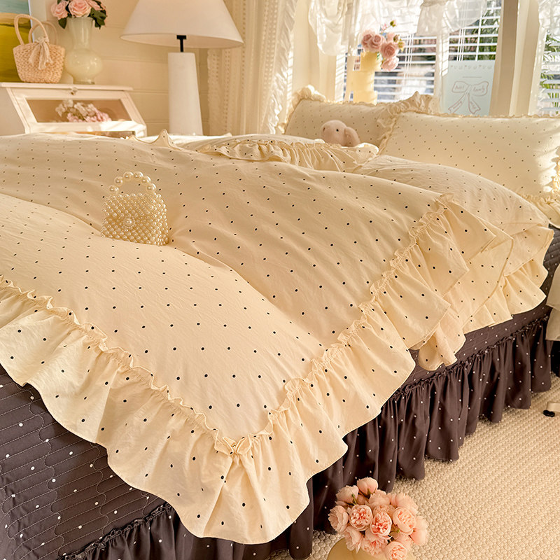 📚 2026年新款公主风水洗棉家用四件套花边款床盖被罩非全棉纯棉床品