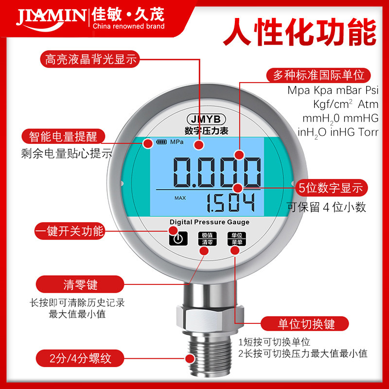 #佳敏智能精密数字压力表 #高精度数显压力表 #水压负压气压表 #不锈钢JM #种草笔记