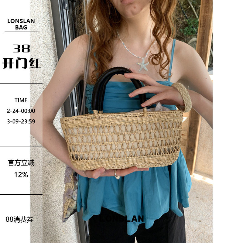 📚 Lonslan BAG 2025 NEW 法式复古镂空度假立型手提菜篮子草编包