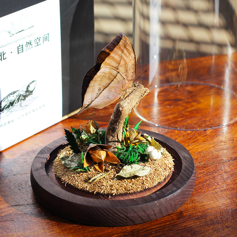 📚 枯叶蝶标本玻璃罩装饰干花蝴蝶真昆虫微景观桌面家居摆件儿童礼物