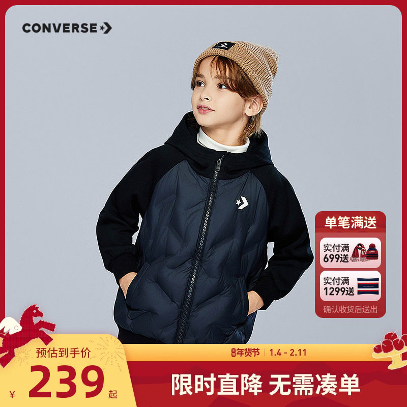 📚 匡威童装儿童羽绒服拼接款男童女童2025冬季新款休闲运动保暖外套