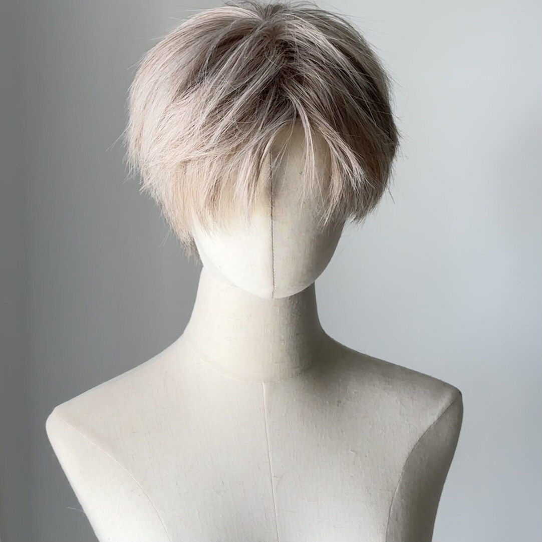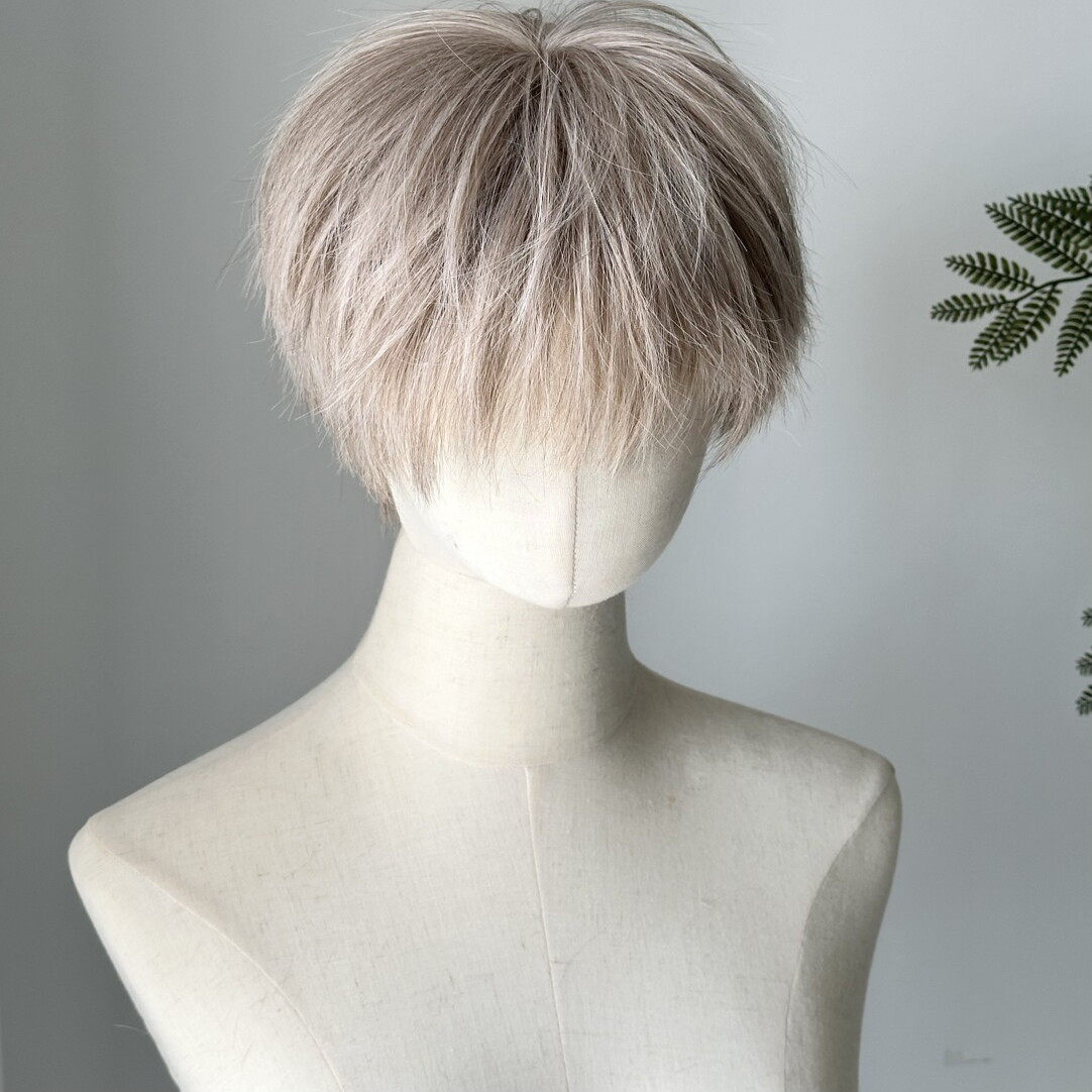 📚 假发韩系浅色短发男女通用微分碎盖自然仿真发万用cos全头套
