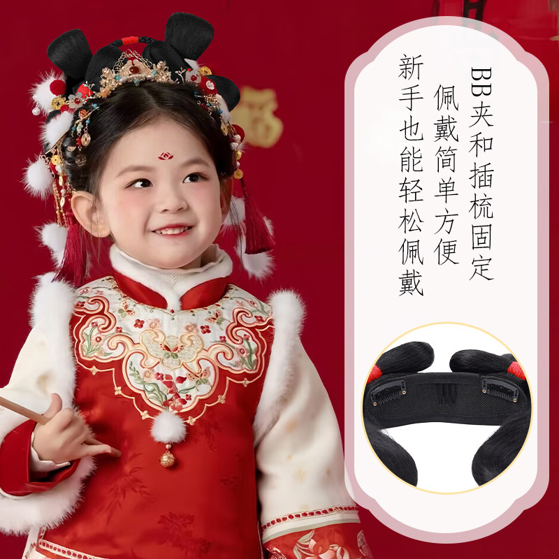 🎀这款儿童汉服头饰假发古风发包,真的是懒人必备神器!无需复杂的步骤,轻松打造出各种发型,省时又省力。而且它的设计简约大方,非常适合儿童穿着,绝对是新年造型的必备单品。