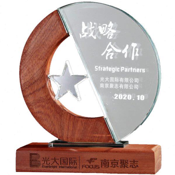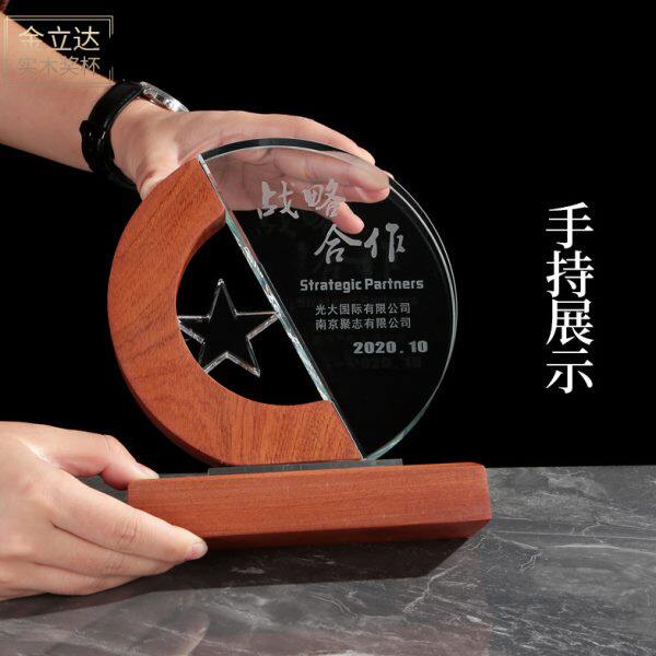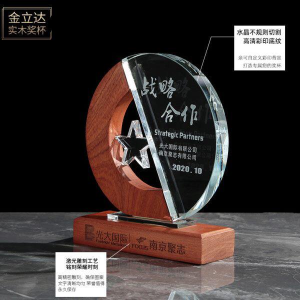 📚 团队之星实木奖杯定制圆形新星奖心型五角星创意月牙弯弯奖杯水晶