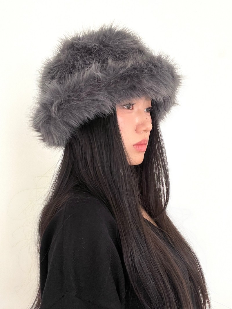 📚 多色可选 高级感时髦仿皮草帽子女冬季新款显脸小毛绒保暖盆帽
