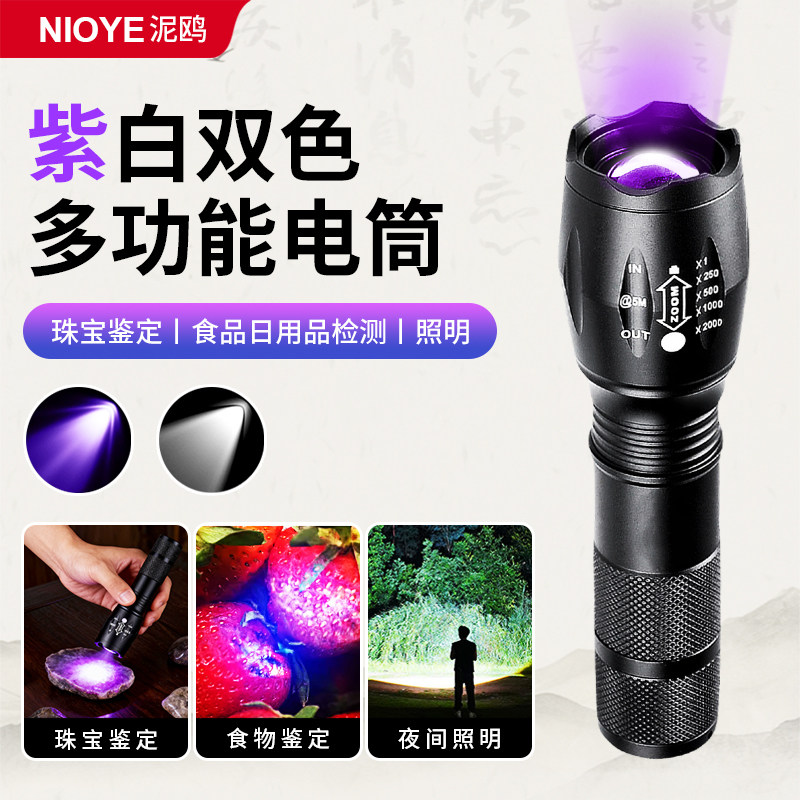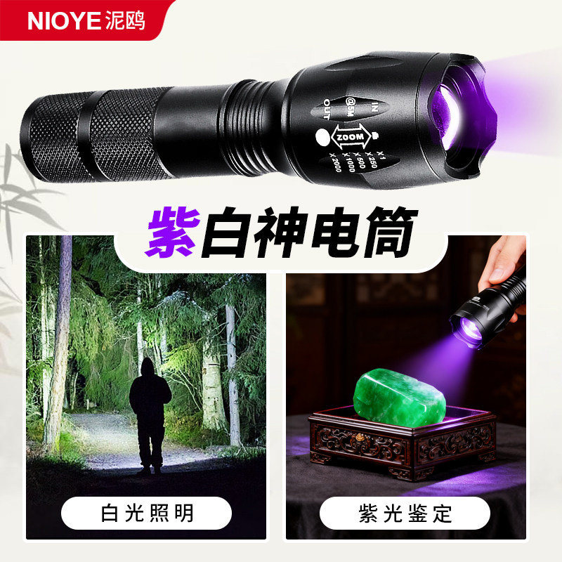 📚 紫光灯鉴定专用验钞荧光剂检测笔验车防伪双光源紫外线强光手电筒