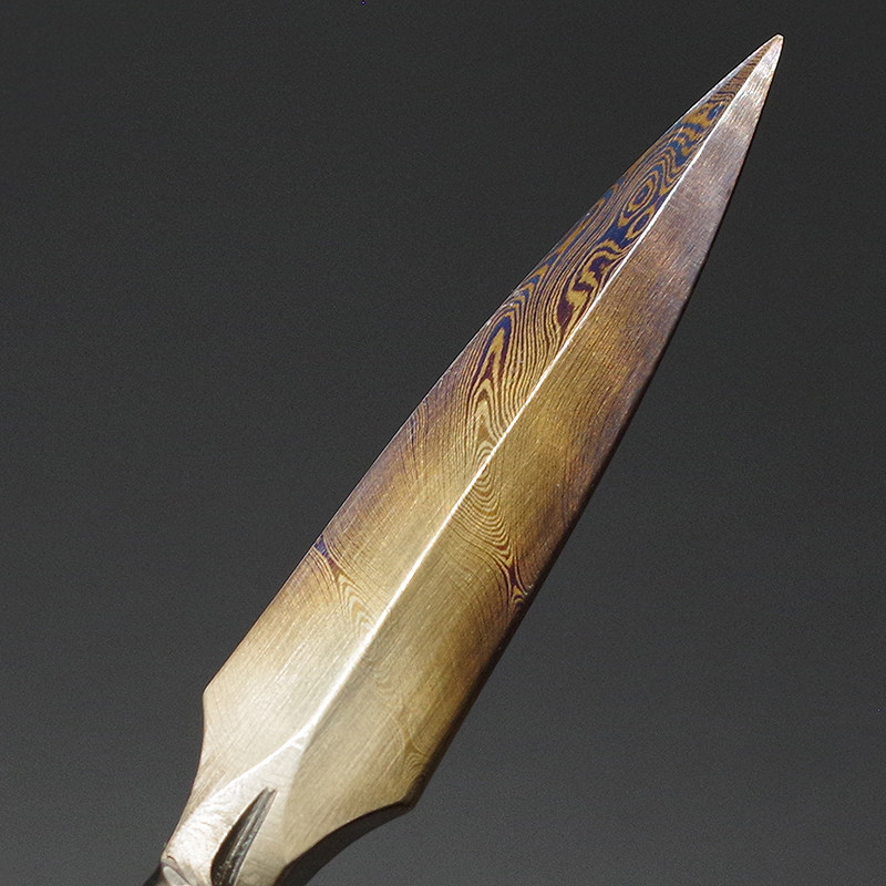 📚 龙泉纯手工锻打百炼花纹钢大马士革普洱专用茶刀茶针撬切茶饼工具