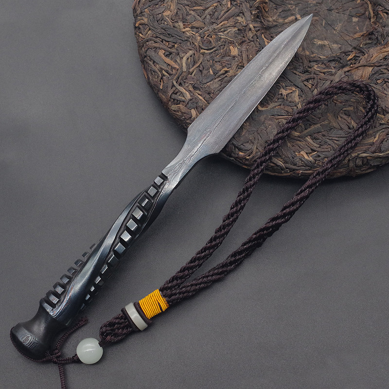📚 龙泉手工家用百炼花纹钢圆柱普洱茶刀茶针撬切茶饼开茶砖专用工具