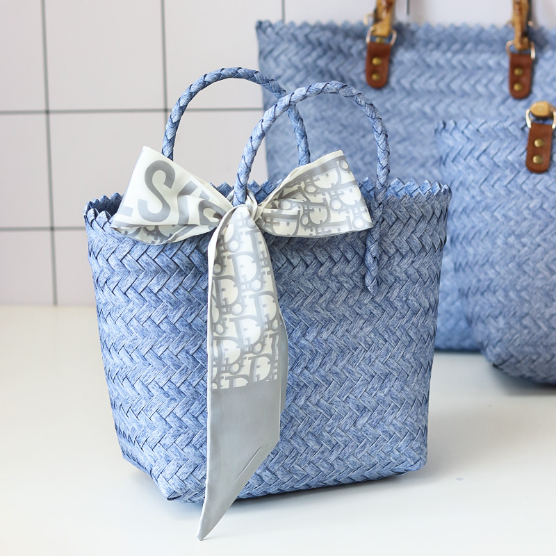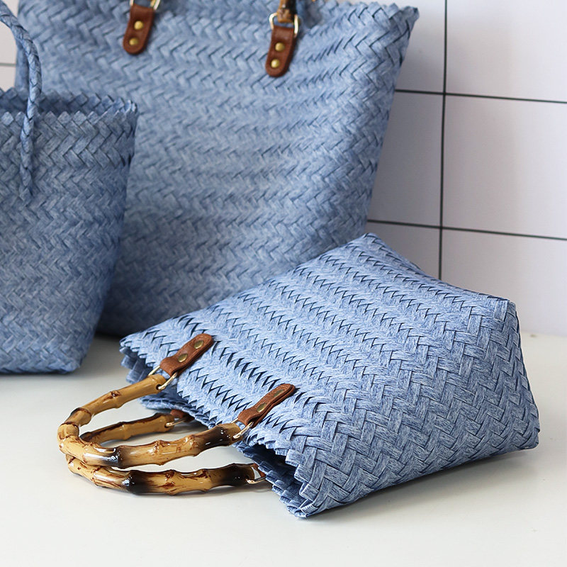 📚 编织草编包春游野餐包复古大容量仿藤片包包女士亚克力手提购物篮