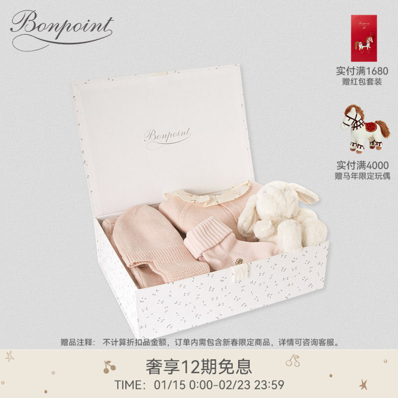 📚 【礼物】Bonpoint小樱桃新生婴儿兔子玩偶宝宝百天满月礼盒
