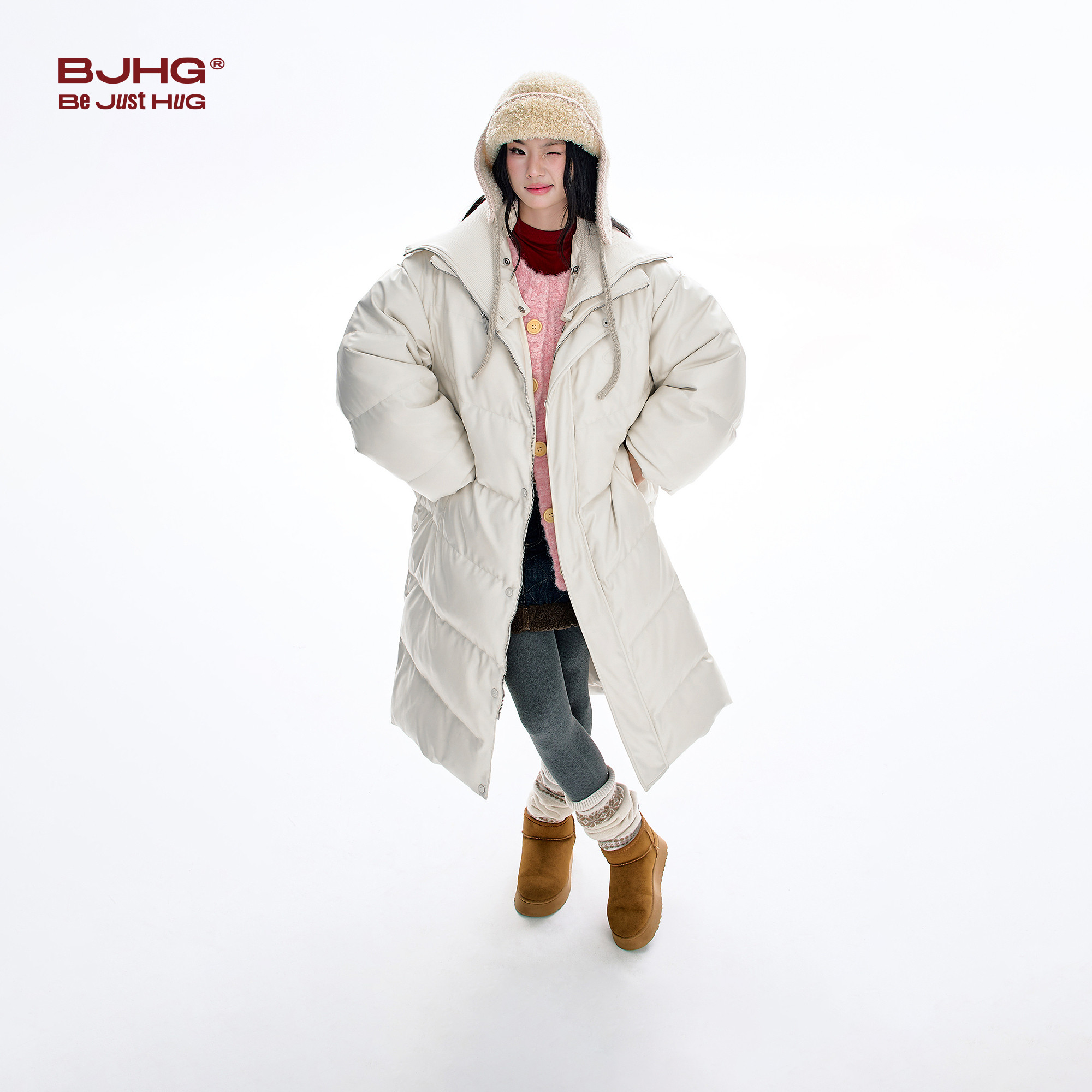 📚 BJHG不计后果高级感长款羽绒服男女款冬季情侣加厚仿蛋白皮羽绒服