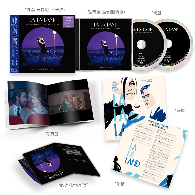 📚 正版 爱乐之城 电影原声带 完整体验版La La Land 2CD唱片+小海报