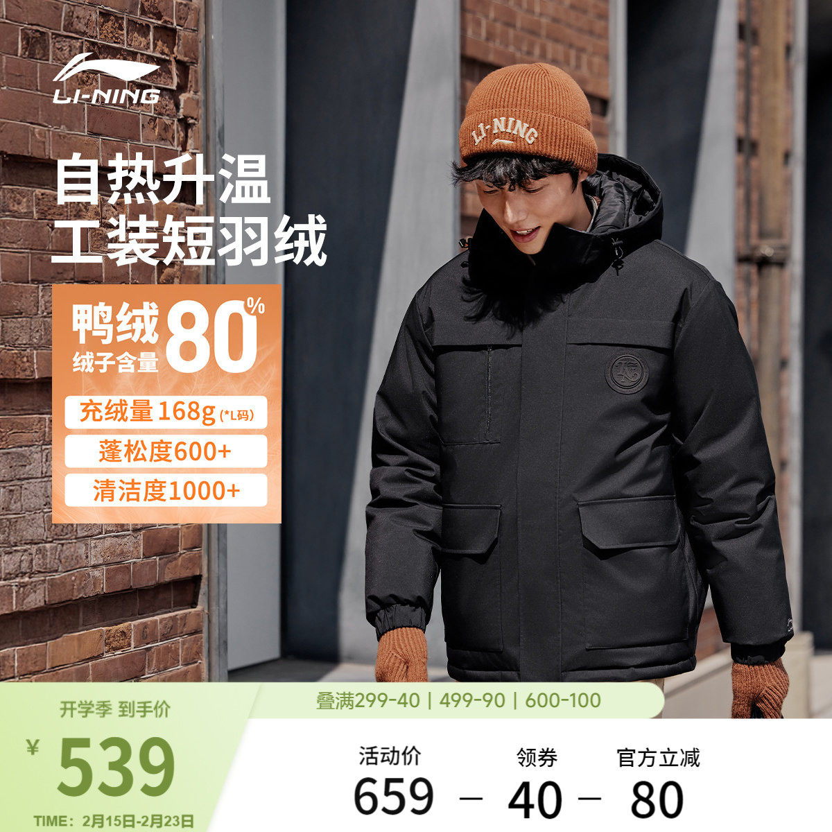 📚 李宁航天动态保暖羽绒服男冬季官方新款连帽衣服短款工装运动外套